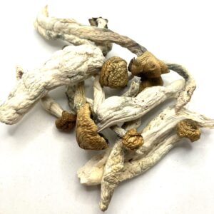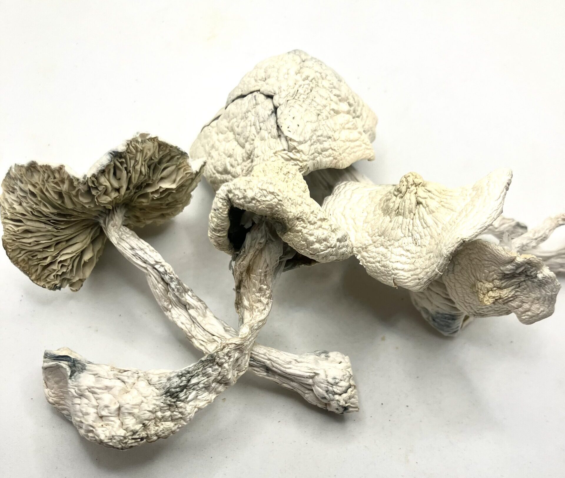 Psilocybe azurescens—commonly known as the flying saucer mushroom, blue angelmushroom, or azure psilocybin mushroom—is a species of psychedelic mushroom whose main active compounds are psilocybin and psilocin. It is among the most potent of the tryptamine-bearing mushrooms, containing up to 1.8% psilocybin, 0.5% psilocin, and 0.4% baeocystin by dry weight, averaging to about 1.1% psilocybin and 0.15% psilocin. It belongs to the family Hymenogastraceae in the order Agaricales.